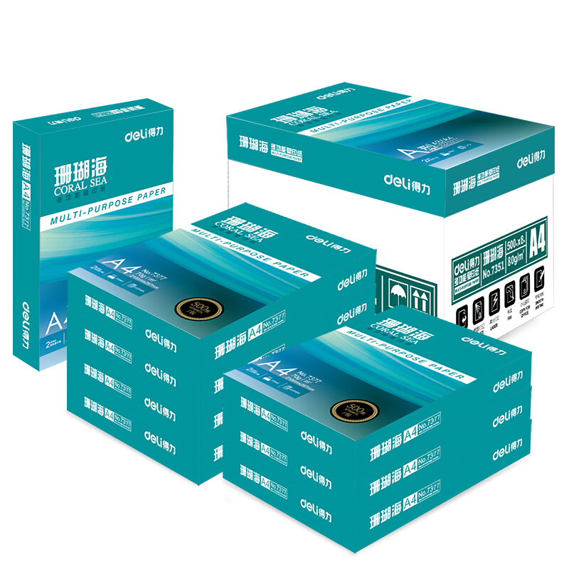 - 商品名稱:得力(deli) 7351 A4 珊瑚海復(fù)印紙 80g 500張/包 8包/箱