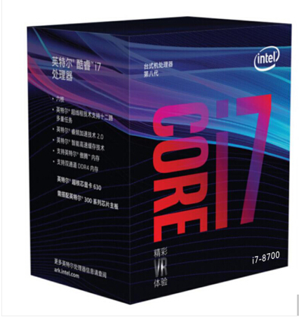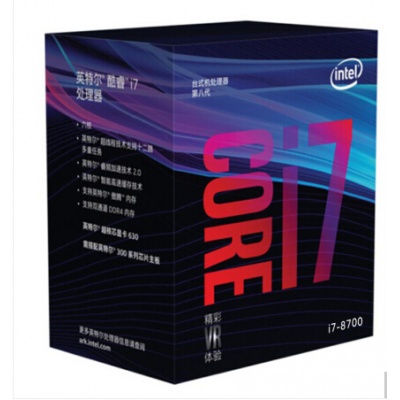 - 商品名稱:英特爾(Intel) i7 8700 酷睿六核 盒裝CPU處理器