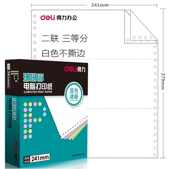 - 商品名稱:得力(deli)珊瑚海S241-2-1/3二聯(lián)三等分80列不撕邊 白色 電腦打印紙 1000頁(yè)/箱